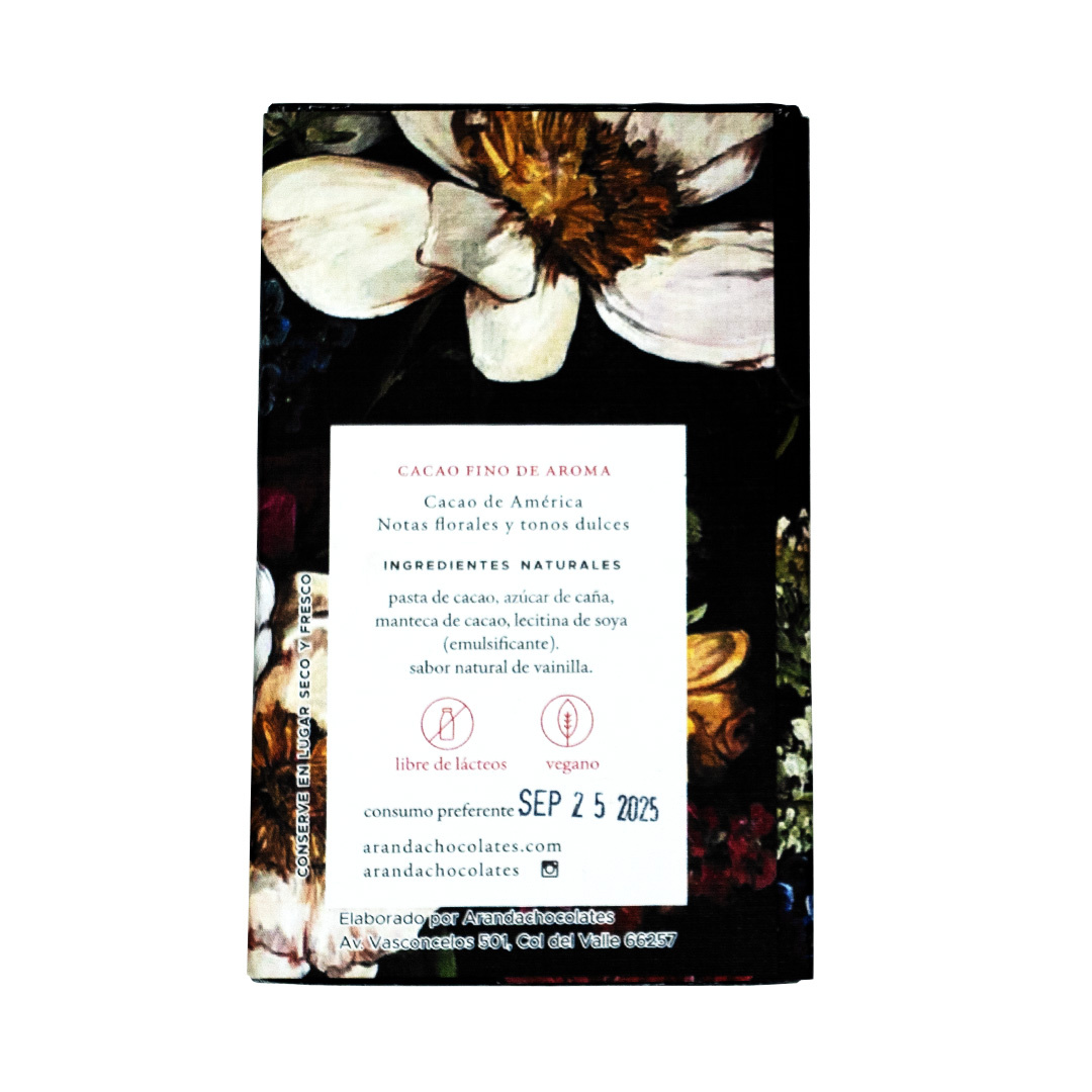 Nuestro chocolate más oscuro, más cacao menos azúcar, hecho a mano, vegano. Libre de lácteos, gluten y conservantes.