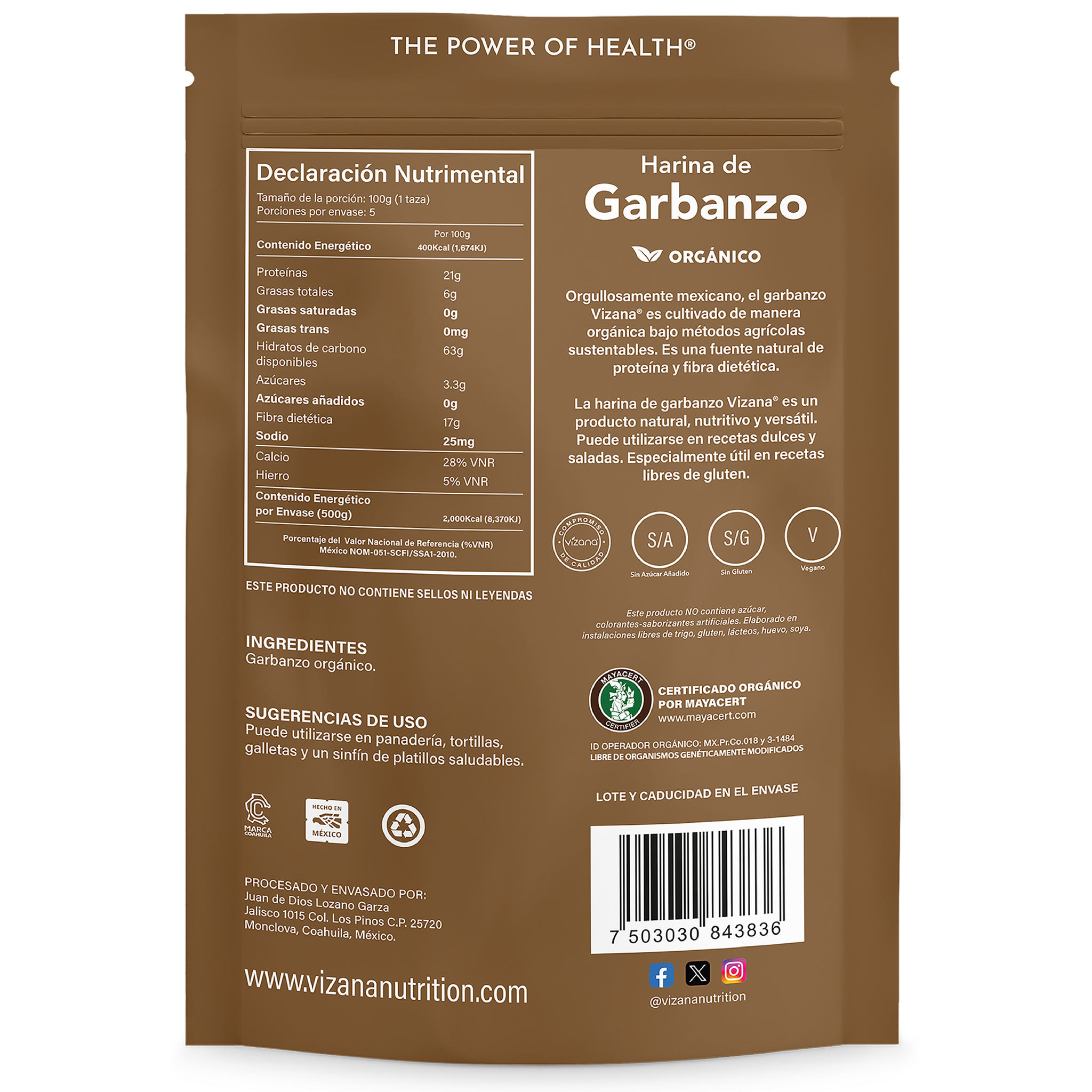 El garbanzo Vizana es cultivado de manera natural bajo métodos agrícolas sustentables. Sin azúcar añadida.