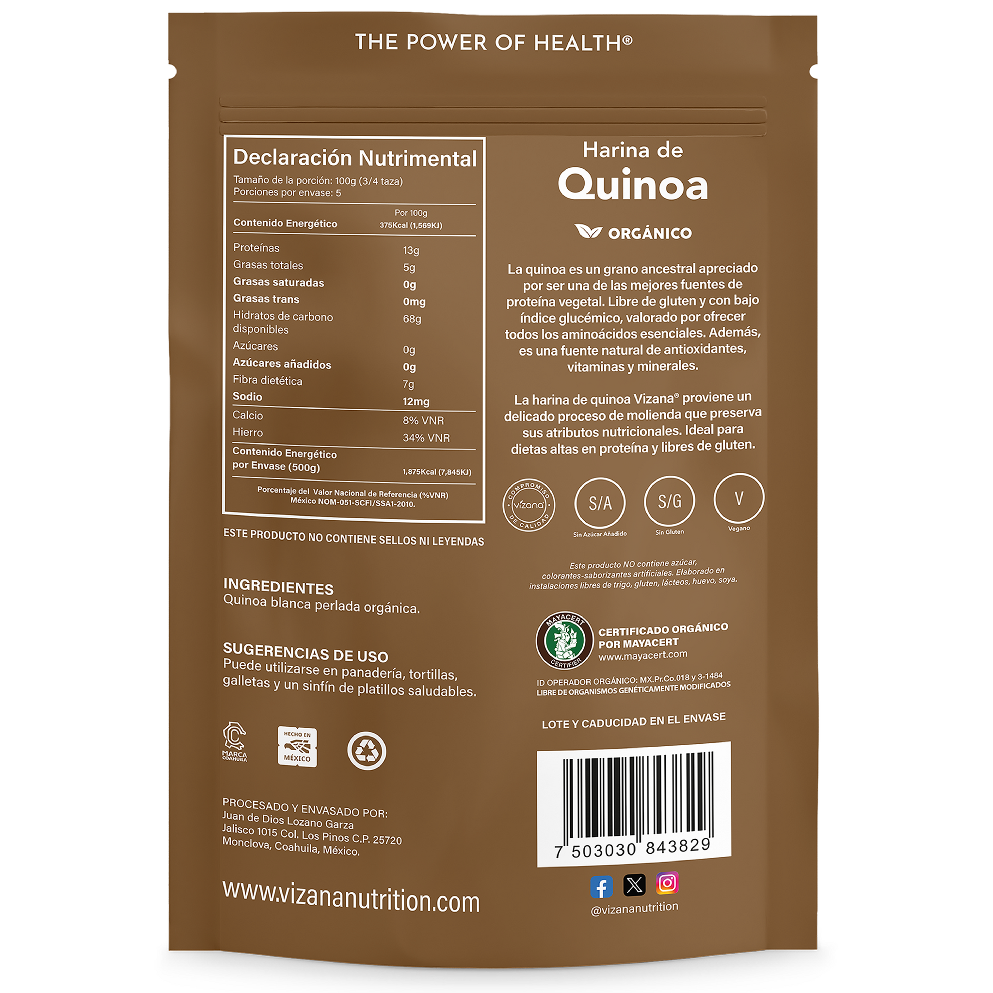Harina de Quinoa Organica Vizana Nutrition 500gr