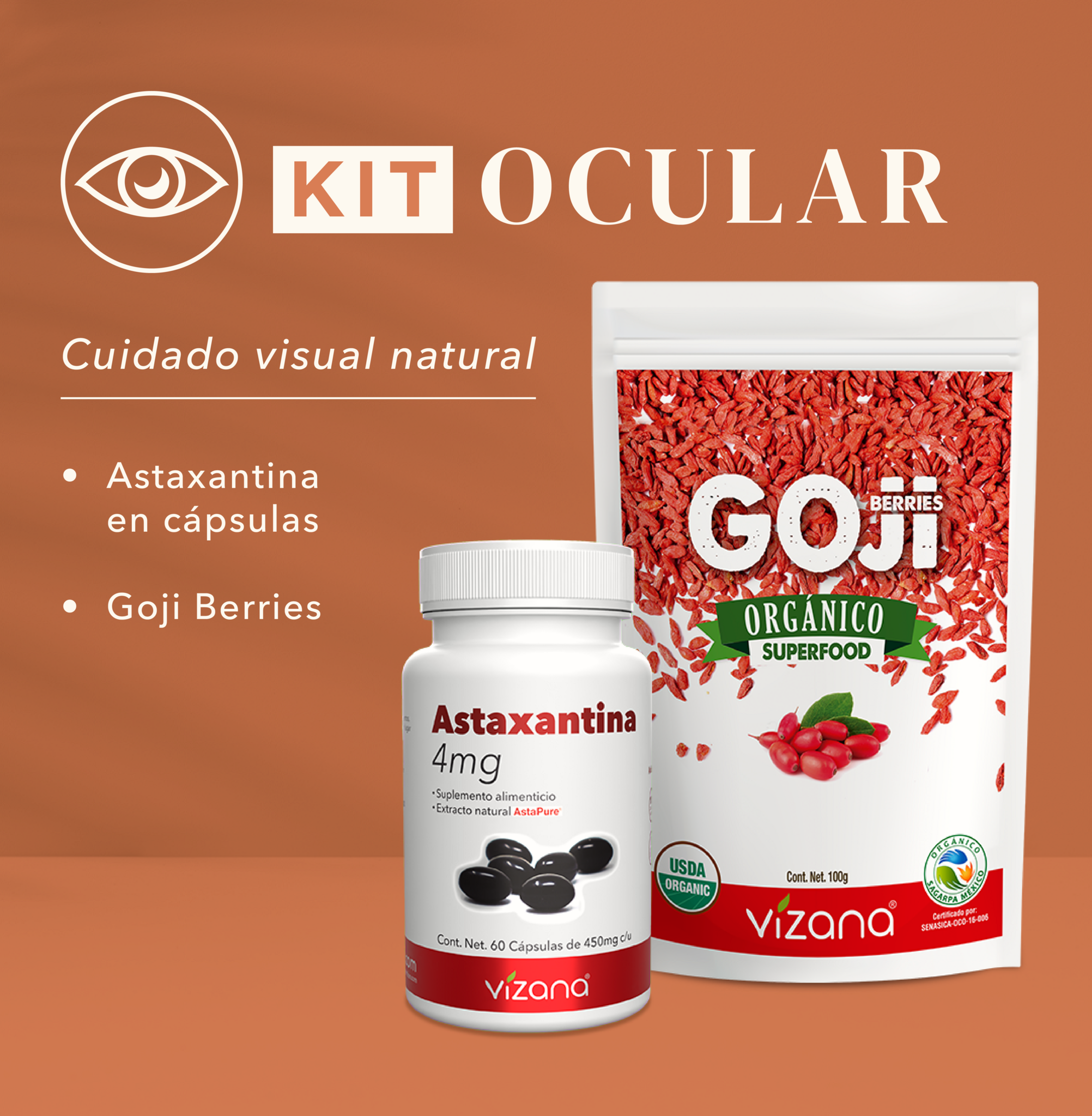 Este kit está diseñado para cuidar tu salud visual, combinando astaxantina, un potente antioxidante que protege los ojos del daño celular, con bayas goji, ricas en vitaminas y antioxidantes que favorecen la salud ocular y mejoran la visión. Juntos, ofrecen un apoyo natural para mantener tus ojos saludables y protegidos.