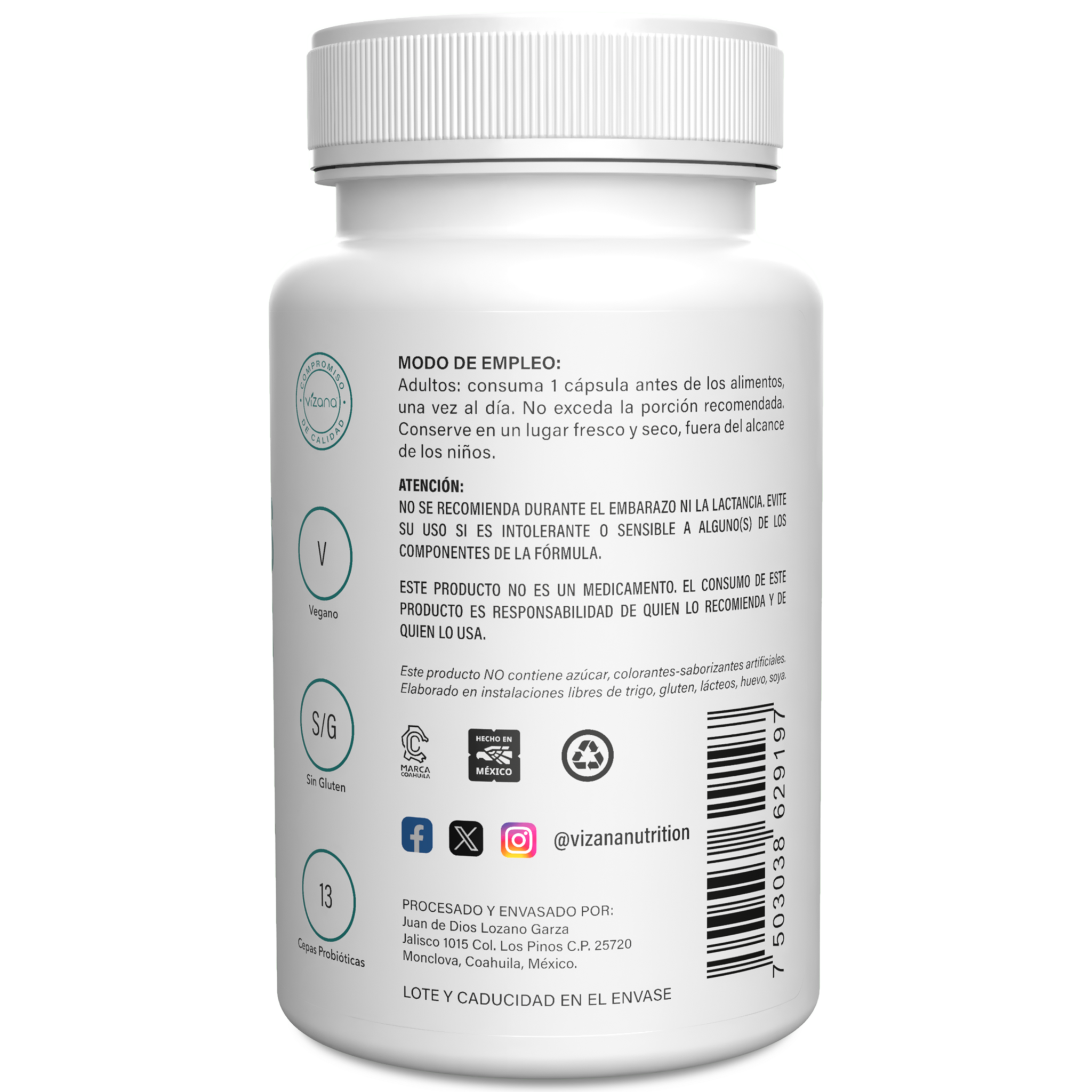 Probioticos 70 billones Vizana 60 capsulas de 500 mg
