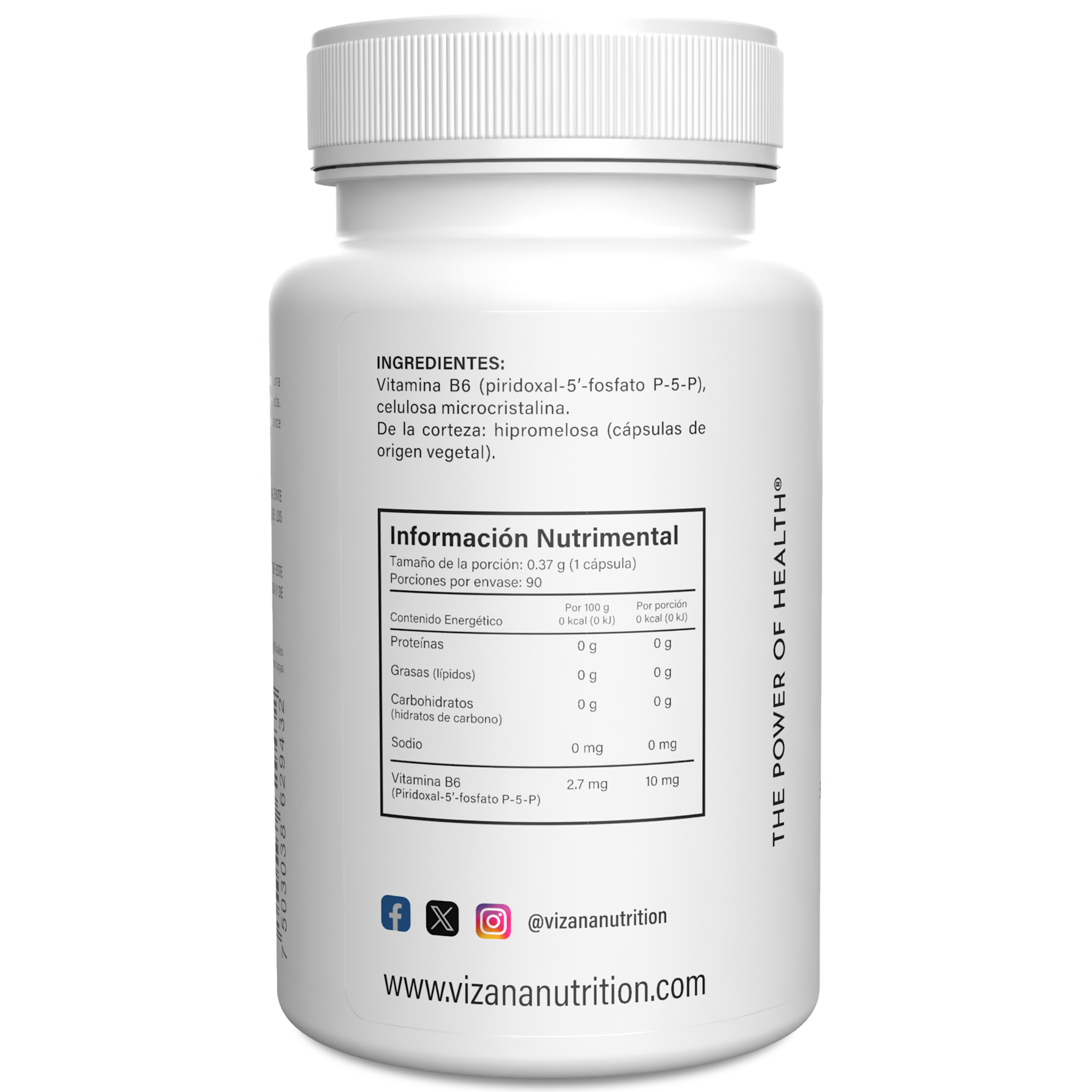 La vitamina B6 (piridoxal-5-fosfato) es un nutriente esencial que participa en el metabolismo normal de proteínas, carbohidratos y grasas. Contribuye al funcionamiento normal del sistema nervioso y al proceso normal de producción de energía.