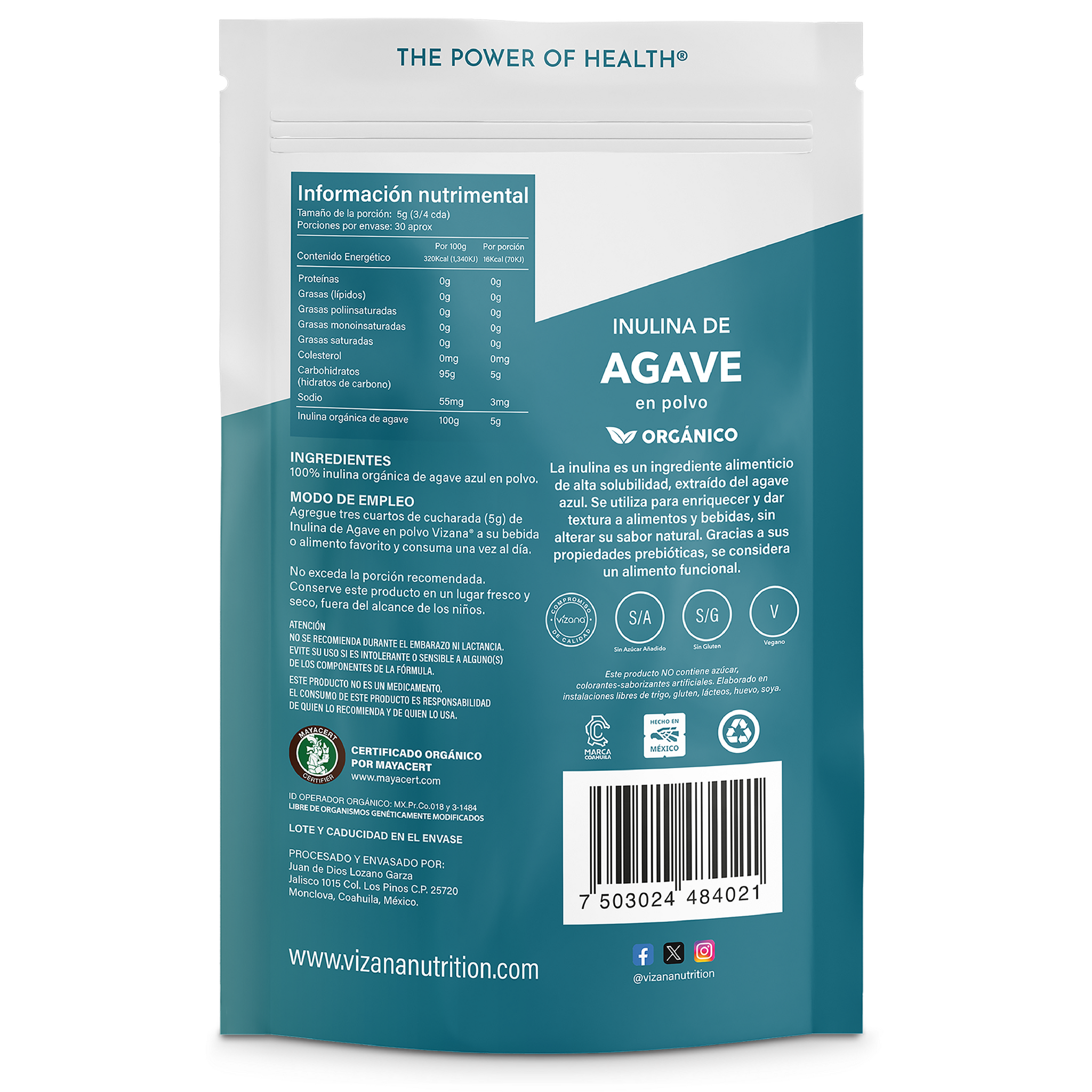 100% inulina orgánica de agave azul.